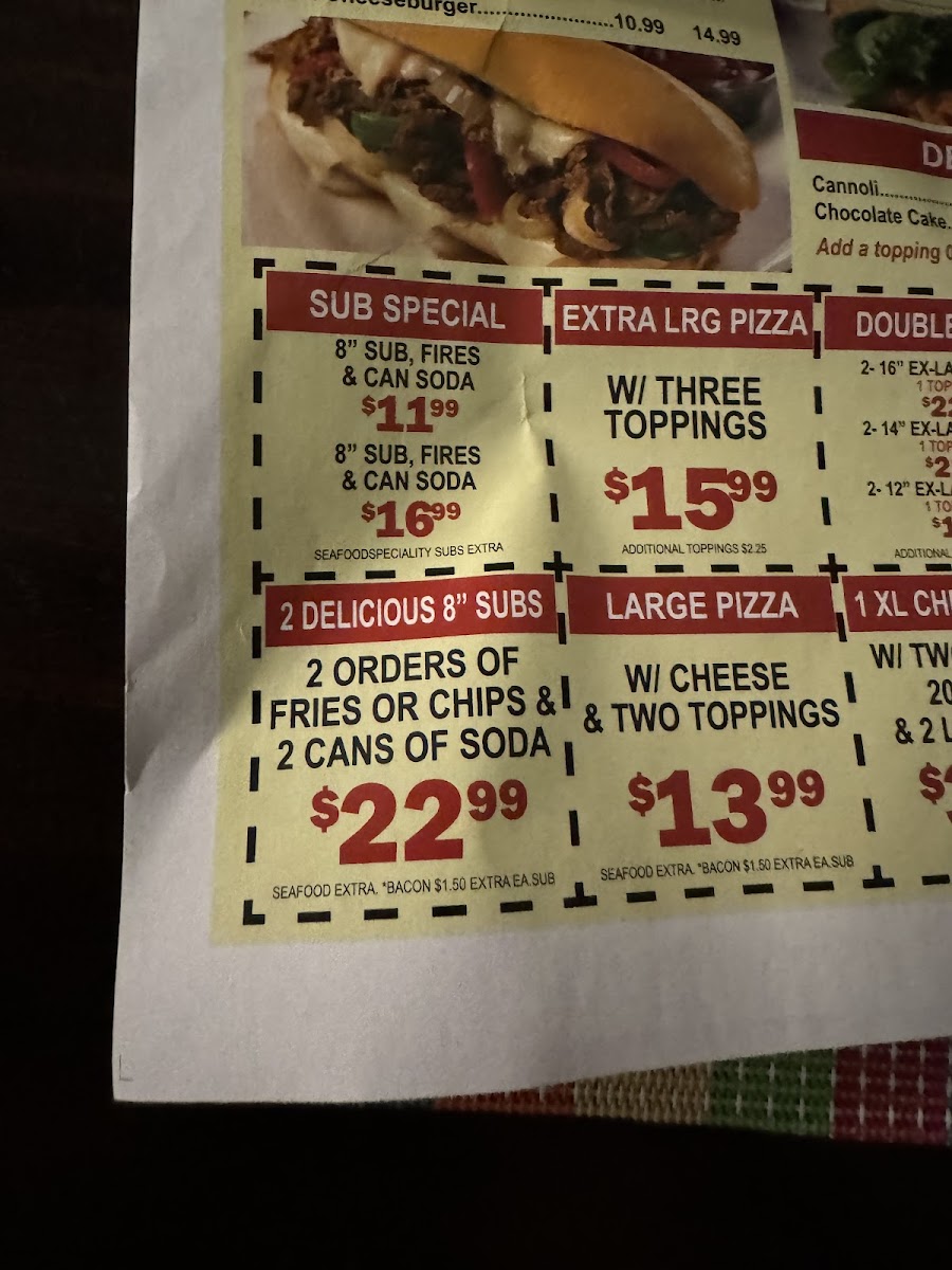 Sliced steak, mozzarella, onions, peppers. Choice of four sizes.